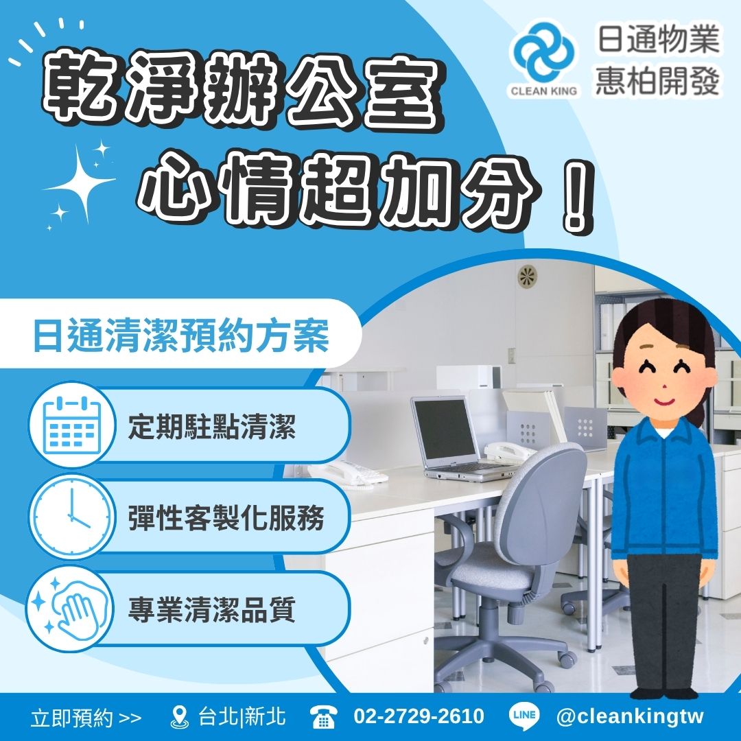 📢 歡迎來電或私訊諮詢,讓日通物業為您打造清爽舒適的辦公空間!