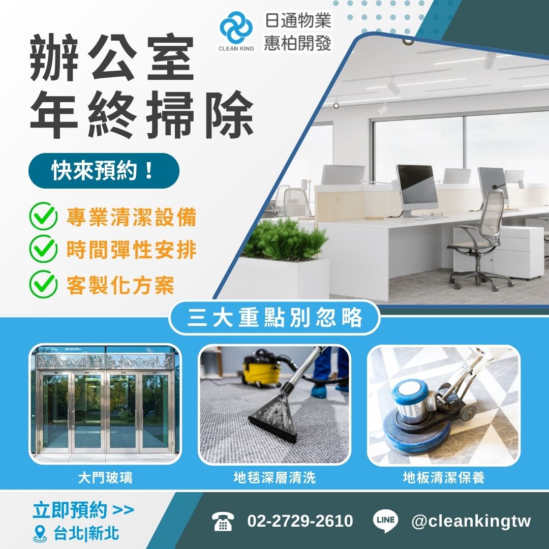 年節將至,是整理環境「重新開機」的最佳時刻,不只家中需要整理,辦公室更是公司門面與員工每天待的地方,一次完整的年終清潔,能讓新的一年從更舒適、潔淨的空間開始,也象徵企業邁向新的氣象與成長。