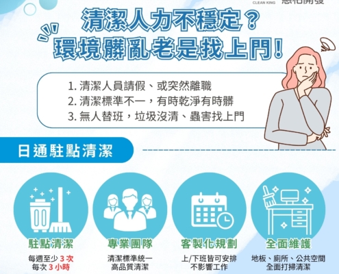 wolfwoo2026-03-23 18:00:052026-03-09 19:39:08【駐點清潔】清潔人力不穩定?環境品質跟著打折扣!